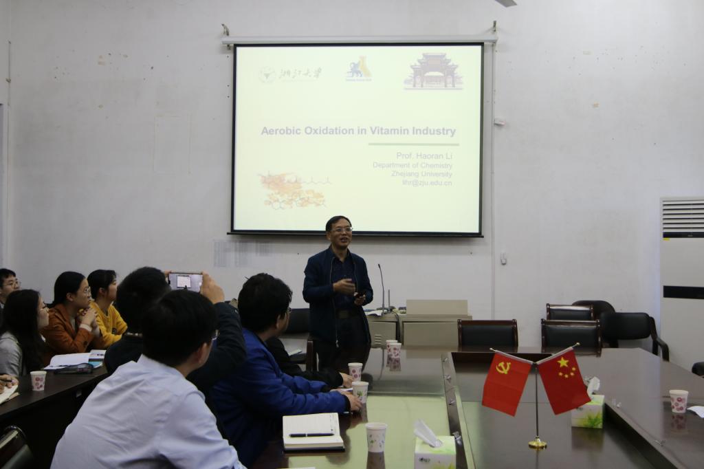 报告会上,李浩然教授重点围绕维生素产业中的空气氧化反应进行详细讲述,并就设计、开发新型高效绿色催化剂应用于空气氧化反应提出了前瞻性观点,最后,李浩然教授就实验科学研究与实际工业应用之间的联系与区别,给与会人员提出了指导与建议。