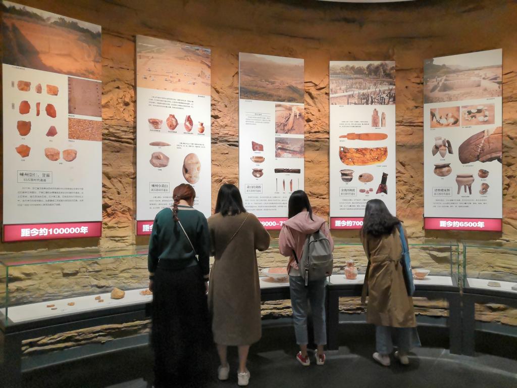 移步第二展厅,“越”文化的天地在眼前徐徐铺展开来。成员们在文物中,在放映的影像视频里,在用陶泥重塑的历史雕像里,找到了绍兴从新石器时代至辛亥革命时期历史变迁的痕迹。�
