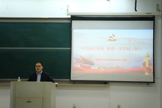 10�26日,学院执行院长曾敏峰以《不忘初心使命,奋进一流学科(院)》为题上了一堂专题党课,参加对象�2019学年党章学习小组学员、全体学生党员和全体研究生。曾敏峰从中国共产党人的初心入手,提出奋进一流学科(院)的使命,结合学院3-5年内涵建设思路,指出,我们必须以绍大为己任,以发展为抓手,加快建成高水平一流学科(院)�
