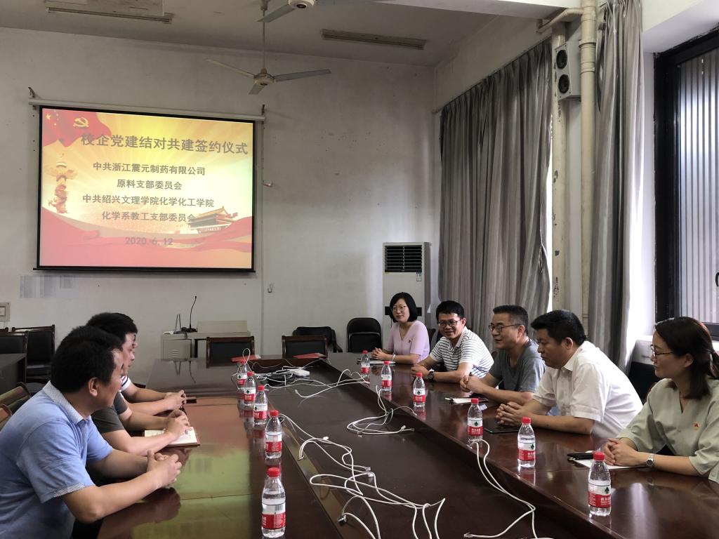 为深入贯彻落实党的十九大精神和习近平新时代中国特色社会主义思想,创新基层党建工作载体,提高基层党建工作水平,进一步探索校企党支部结对共建模式,增强党支部的凝聚力和战斗力�6�12日上午,在学院党委书记魏佩敏同志和党委副书记徐青同志的带领下,化学系教工党支部与来访的浙江震元制药有限公司原料党支部举行了校企党建结对共建签约仪式。学院党委专职组织员俞兰芳同志,化学系教工党支部书记许映杰同志、组织委员方萍同志和宣传委员刘海玲同志参加了本次活动。浙江震元制药有限公司原料党支部书记王奇伟同志、宣传兼纪律委员潘岳锋同志、组织委员黄海平同志及支部内其他党员代表出席了签约仪式�