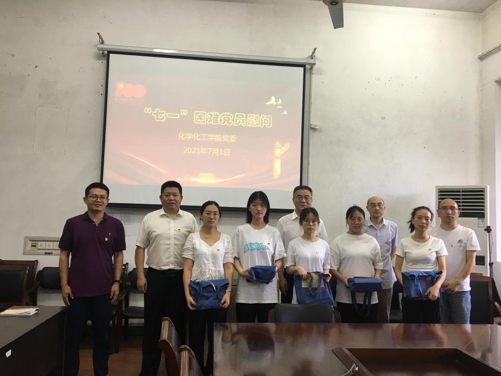 中国共产党员成立百年之际�7�1日下午,化学化工学院组织开展困难党员慰问座谈活动。学院党委书记魏佩敏、副书记徐青、各教工党支部书记、专职组织员和困难学生党员参加了此次活动�