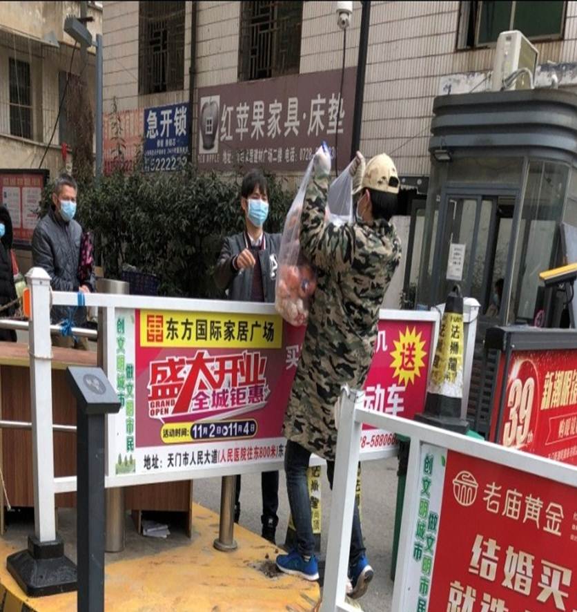 化学化工学院应用化学162班樊少康家在湖北天门,由于离武汉较近,市区实行全城封闭。他积极响应号召,参与疫情防控志愿服务,主要任务是给市区各小区,社区进行果蔬肉类的物资配送。每天早上七点钟,他就前往猪肉分装点装运猪肉,然后到果蔬批发集装点,拿各小区的物资订单,最后进行装车,到达地点后给需要物资的人打电话,递送物资�