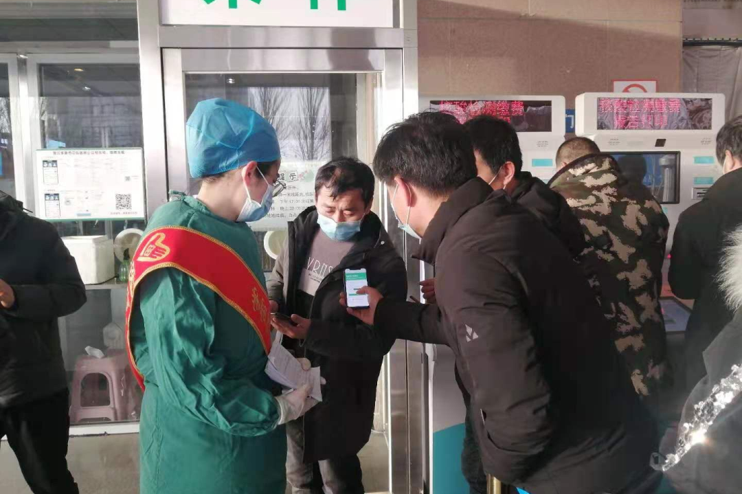 刘彩琴在家乡的医院门口进行疏导人员,帮助大家有序排队,协助大家挂号等工作�